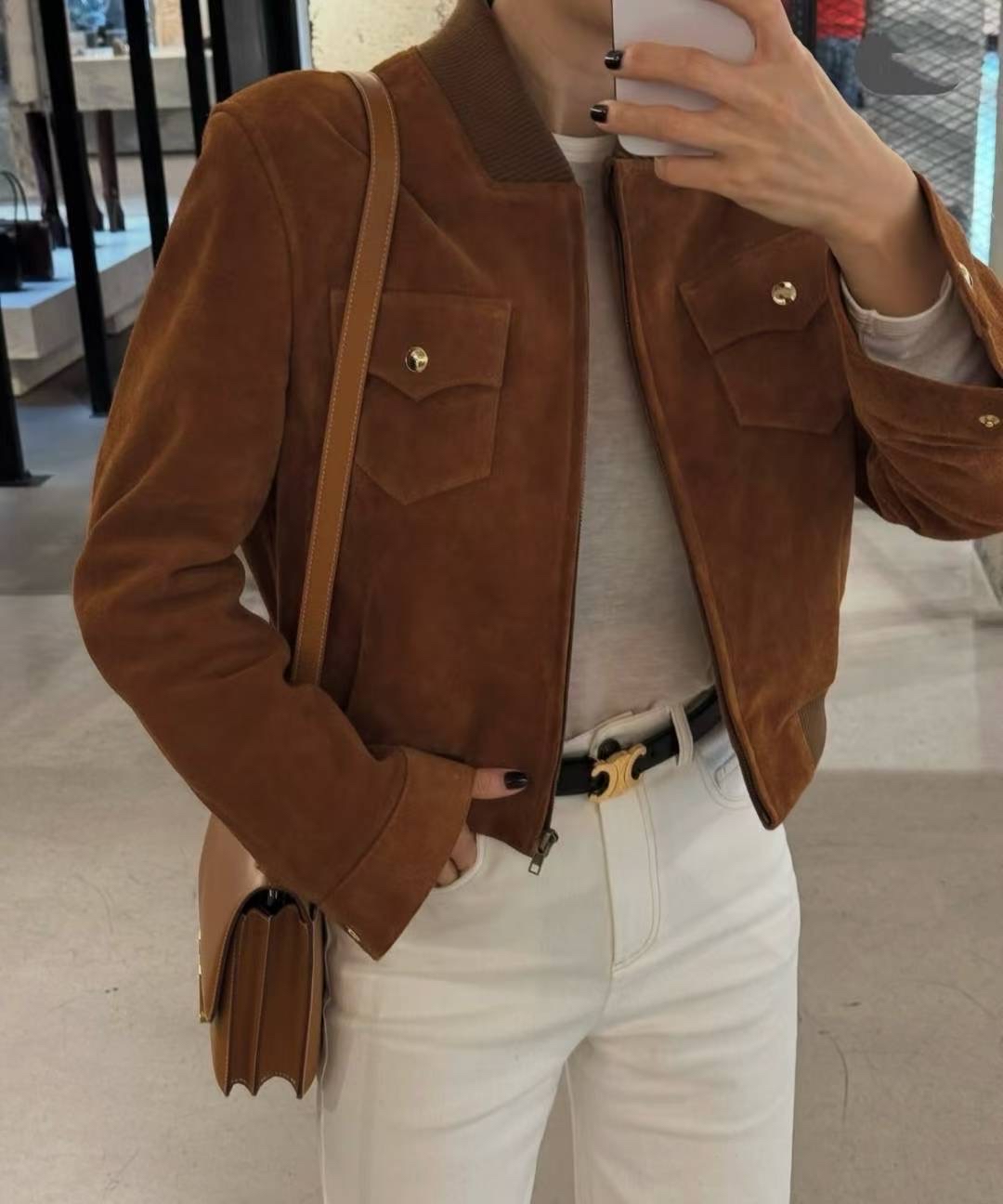 東大門寶藏貴婦品牌 超班手功面料和高級感的剪裁 獨特的品牌高雅氣質 只此一家 某些款式批價絕對是東大門數一數二的高 很少會撞款 也很少會出錯 高檔次質量同設計絕對值得購買 Outer Cowhide 100 Inner Poly 100 Bust 40” Length 22.5” Armhole 9.45” Shoulder 16.5” Sleeve 23.2”