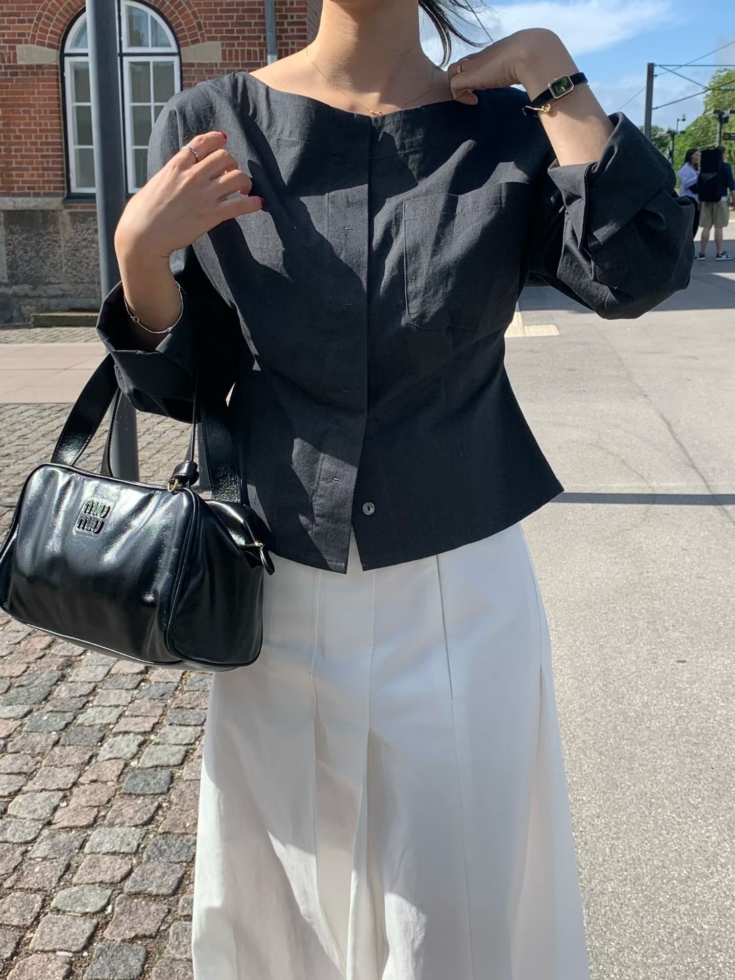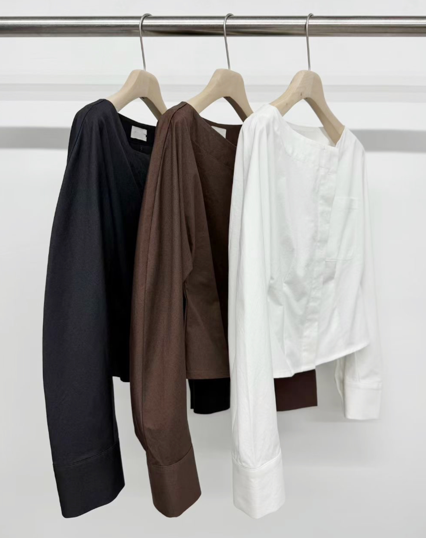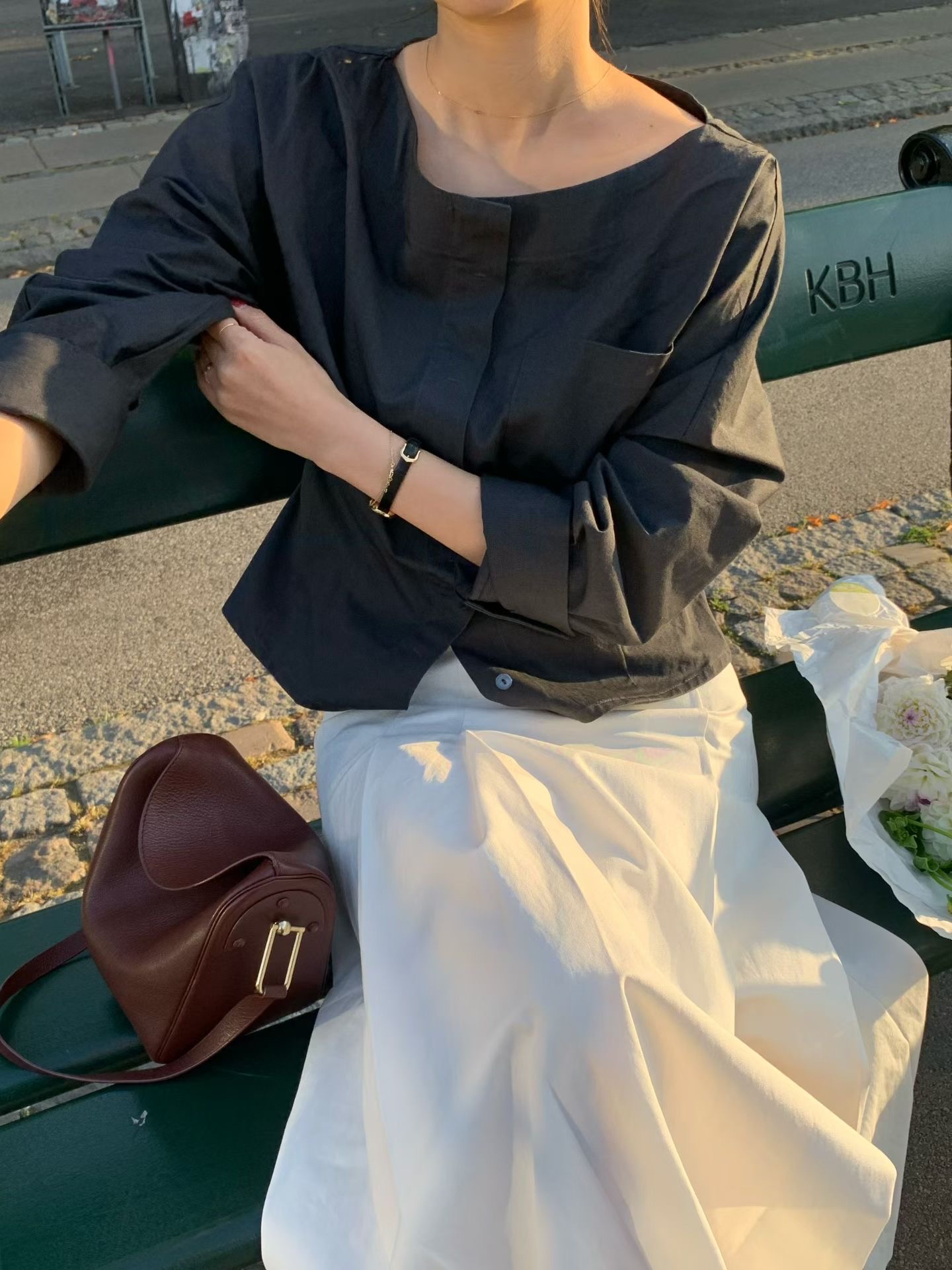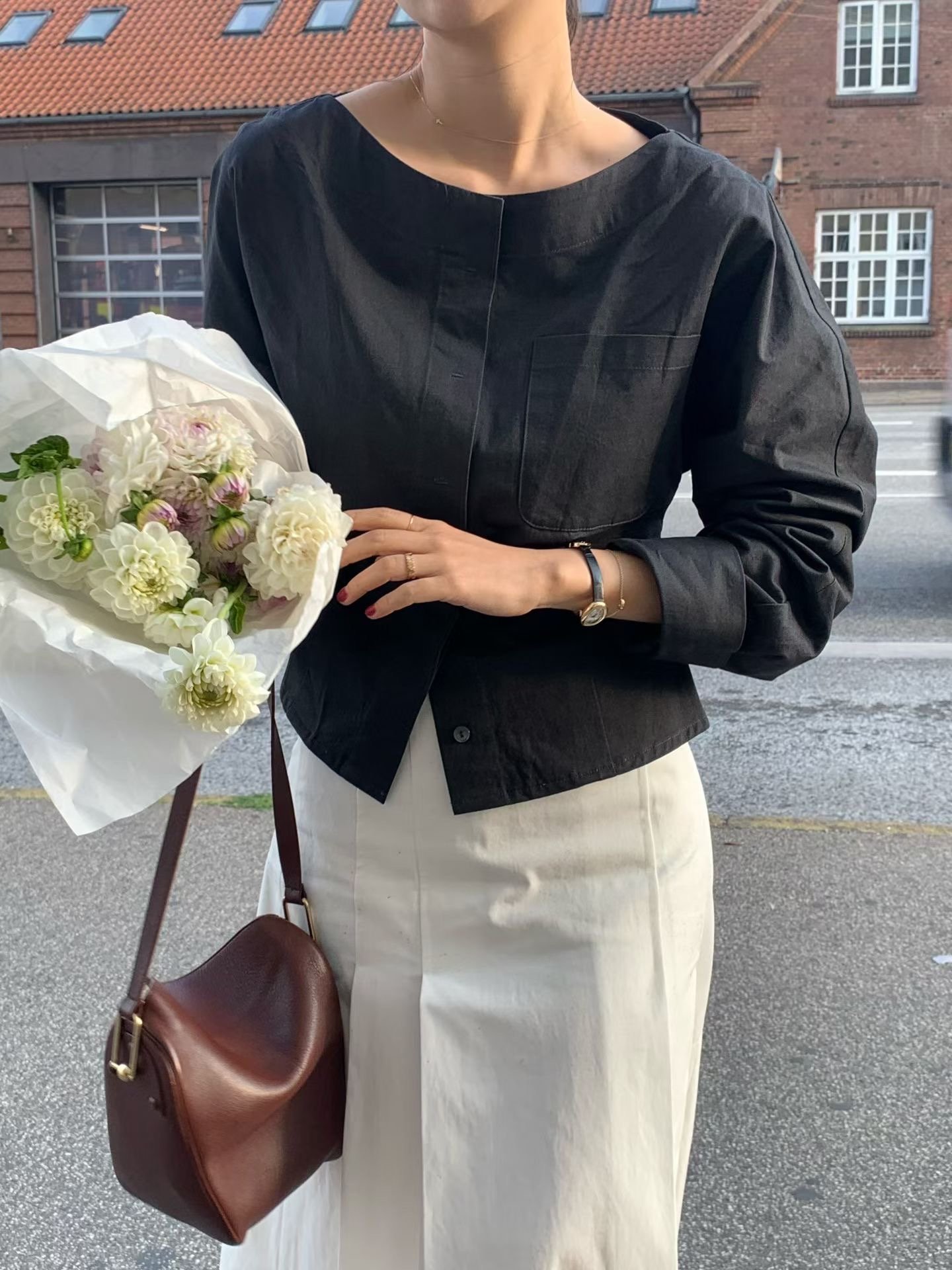 型格韓國網紅網店最愛的東大門品牌 時尚型格又有格調的設計師品牌 看似簡單的設計 亮點是獨有的靚剪裁 -韓系方領收腰短款襯衫 -復古方領設計 露出精緻鎖骨 -收腰版型+收褶袖口 慵懶浪漫並存 -左側立體貼袋 實用又顯層次 -棉質面料 透氣舒適不悶熱 -黑色 焦糖棕色 白色